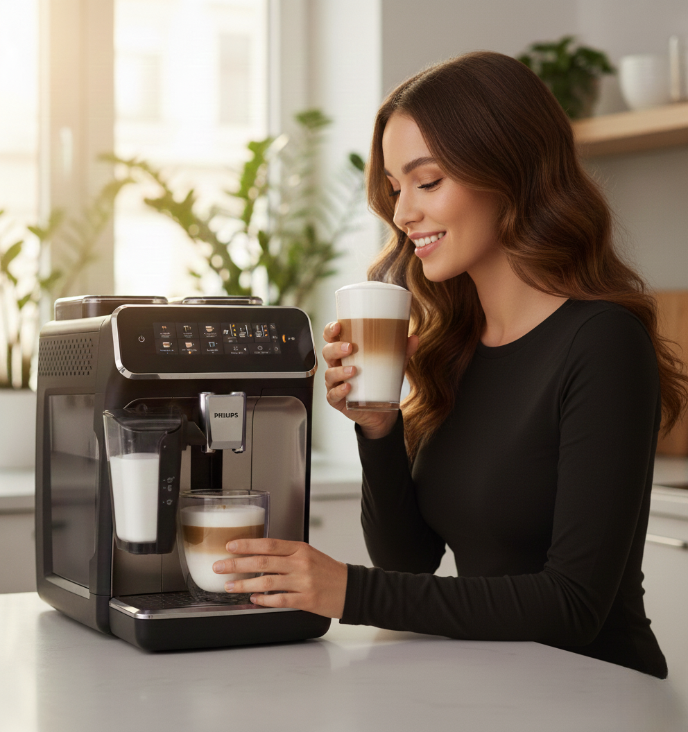 Diese Kaffeemaschine ist alles andere als gewöhnlich – sie vereint präzise Technologie mit durchdachtem Design, um mehr als nur Kaffee zuzubereiten. Mit jeder Tasse entfaltet sie intensives Aroma, optimale Crema und gleichbleibende Qualität dank intelligenter Brühprozesse und hochwertiger Komponenten. Ob kräftiger Espresso, cremiger Cappuccino oder sanfter Kaffee – sie liefert sichtbar besseren Geschmack bei maximaler Benutzerfreundlichkeit und kompromissloser Qualität.